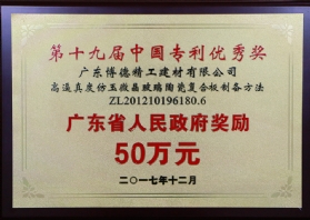 2018中國專利優秀獎政府獎勵50萬元