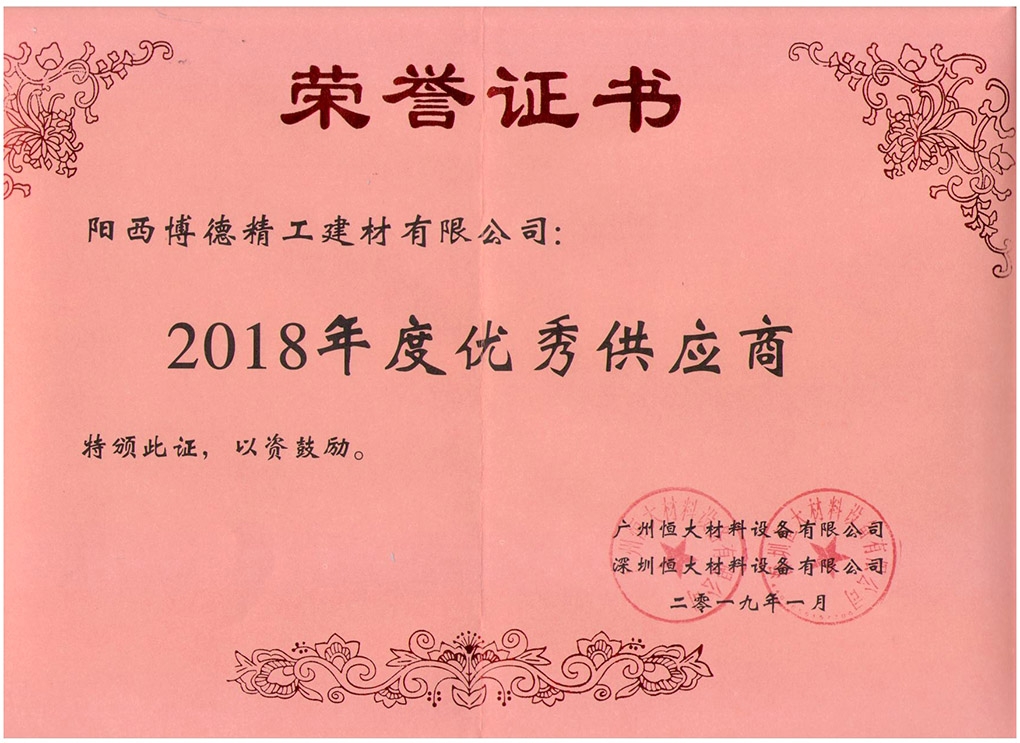 2019年 恒大優秀供應商